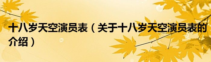 大家好,今天小乐来为大家解答以上的问题。十八岁天空演员表,关于十八岁天空演员表的介绍很多人还不知道,现在让我们一起来看看吧!